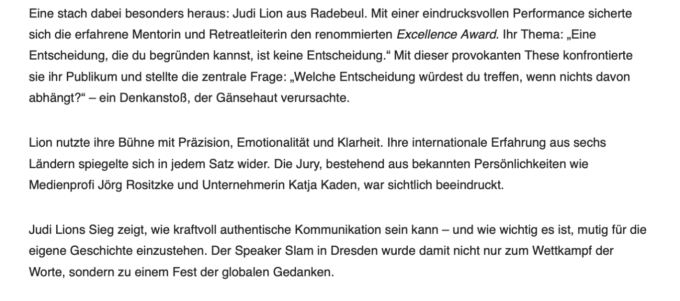 Meine Rede beim Internationalen Speaker Slam am 15. Januar 2026 in Dresden.